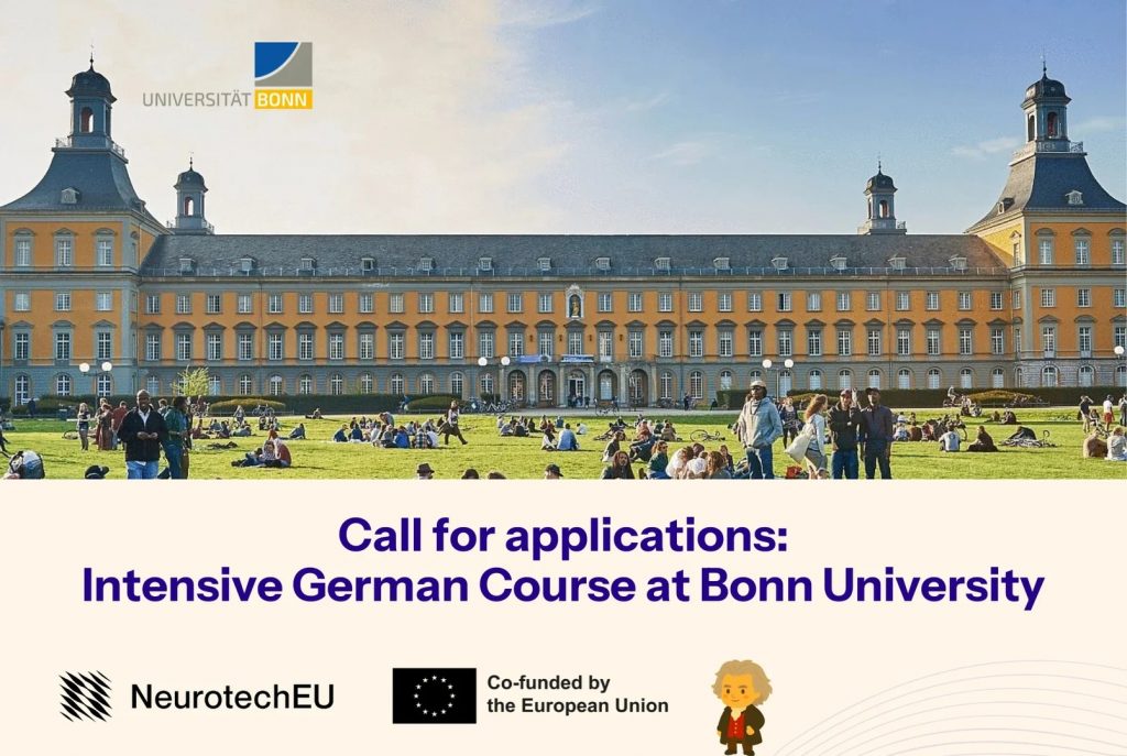 The University of Bonn, within the framework of the European University of Brain and Technology – NeurotechEU, is organising the eighth edition of the German Intensive Courses. This course is designed for Bachelor’s, Master’s, and Doctoral students and will take place during March 2026 in Bonn (Germany). Furthermore, attendees will participate in a neuroscience-related event.